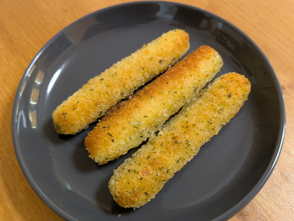 冷凍状態のチーズスティックを240度のオーブンで4分~4分半程度ひっくり返しながら揚げて、お召し上がりください。
